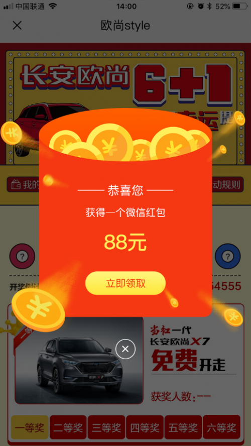 参与“长安欧尚6+1,当红X7幸运提”活动并完成任务,即可获取随机数字;